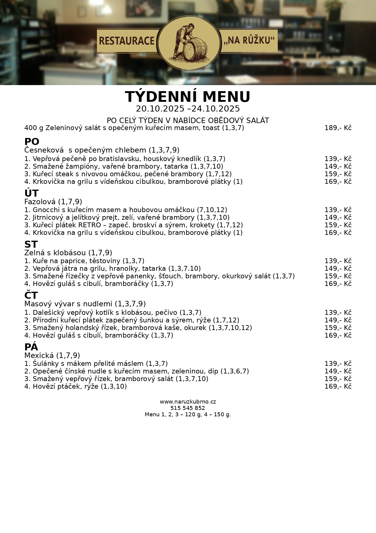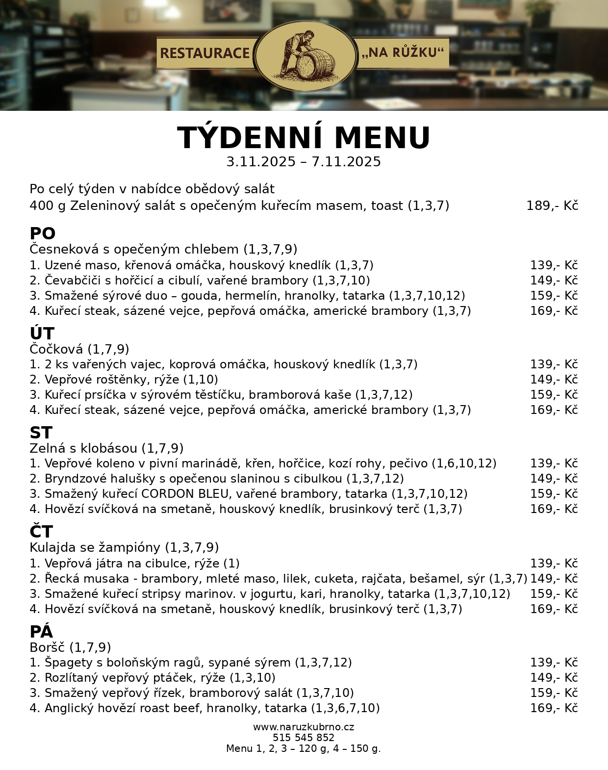 Pro detailní přehled alergenů můžete kliknout na tento link -https://www.naruzkubrno.cz/alergeny/
